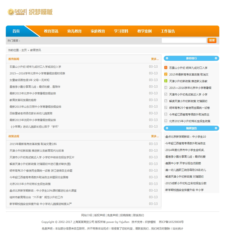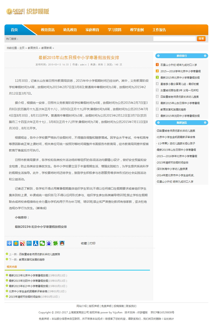 清新幼儿教育文章资讯类企业织梦模板-DeDecms(织梦)模板