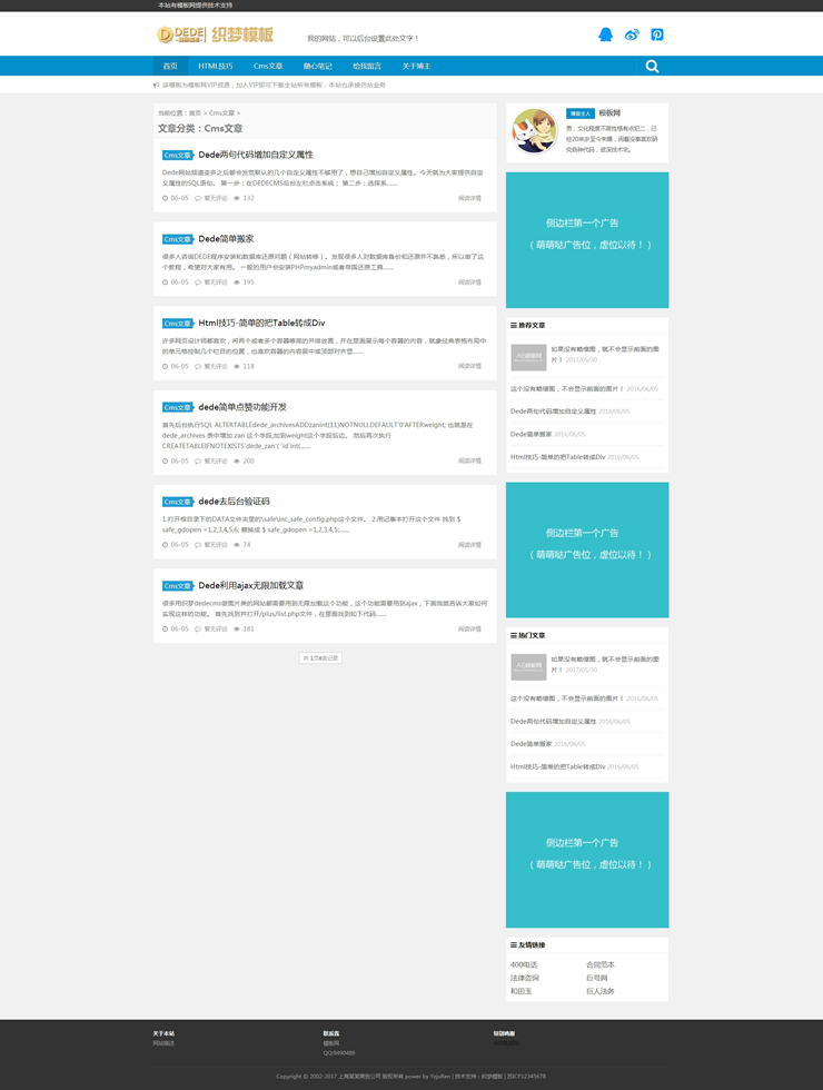 蓝色科技资讯博客类网站织梦模板(带置顶文章功-DeDecms(织梦)模板