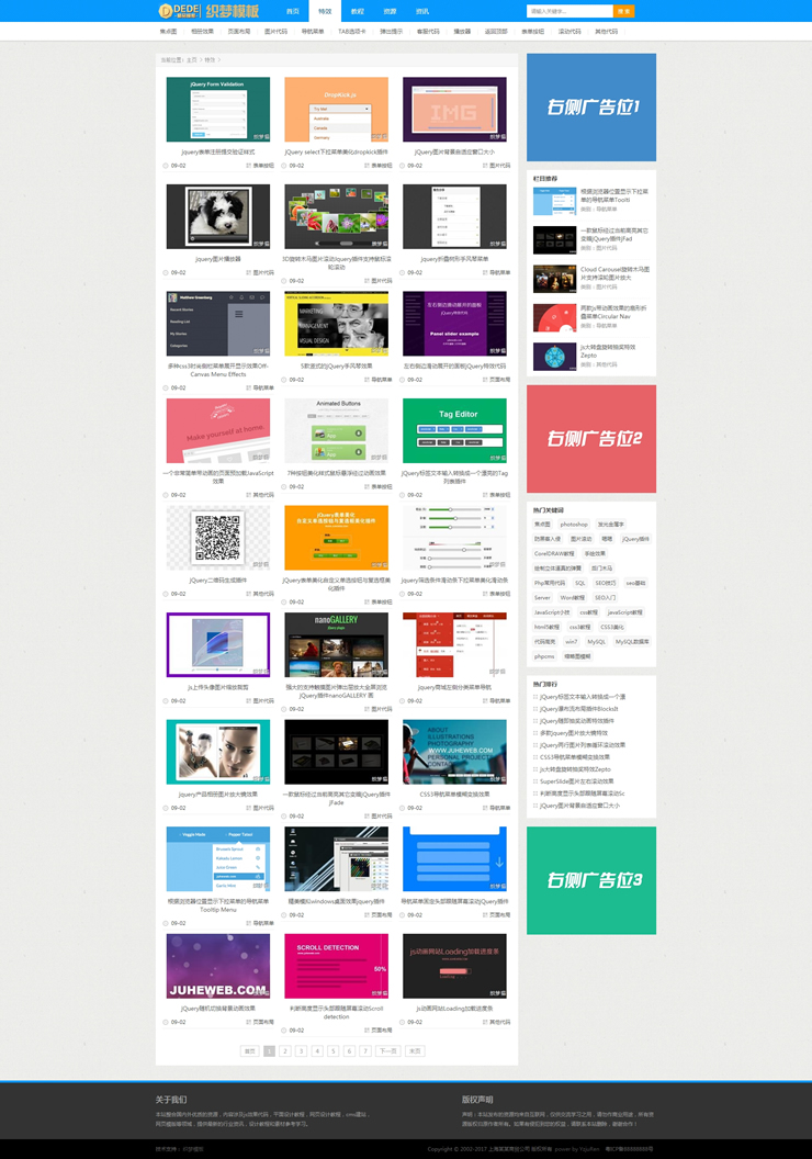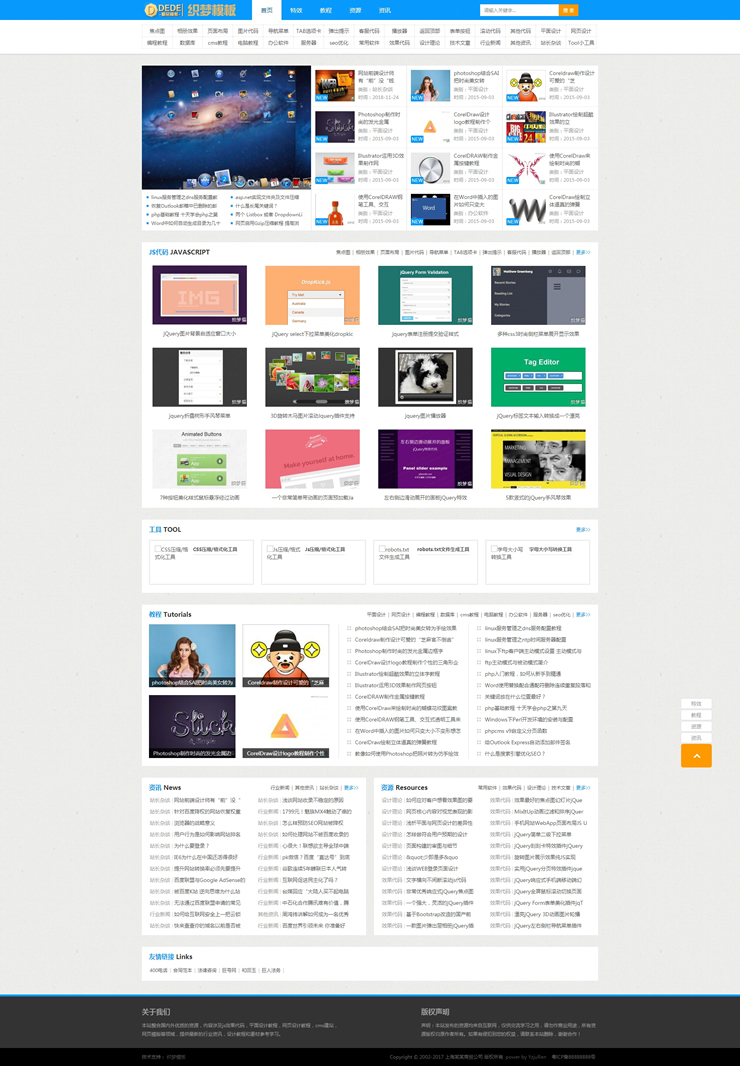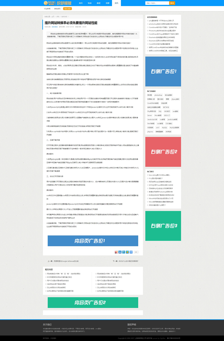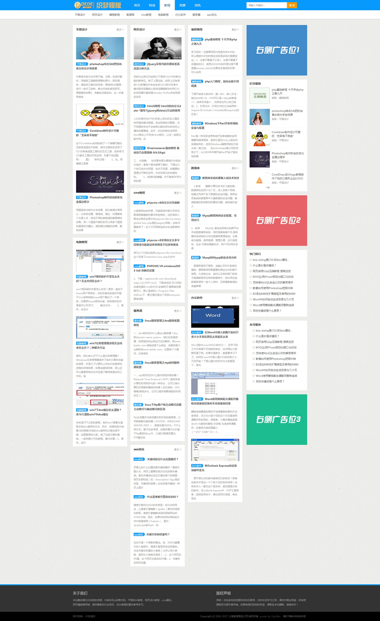 蓝色素材资源文章类织梦模板站长资源素材教程-DeDecms(织梦)模板