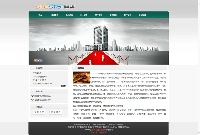公司拍卖行黄金典当行会展企业建站系统-建站之星模板
