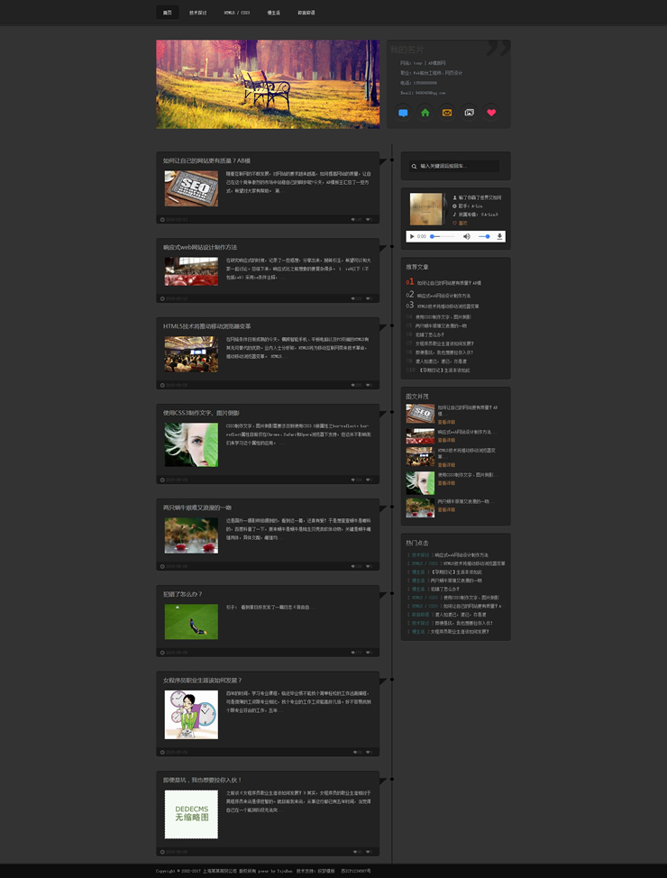 响应式个人博客生活日志织梦网站模板html5个人资-DeDecms(织梦)模板