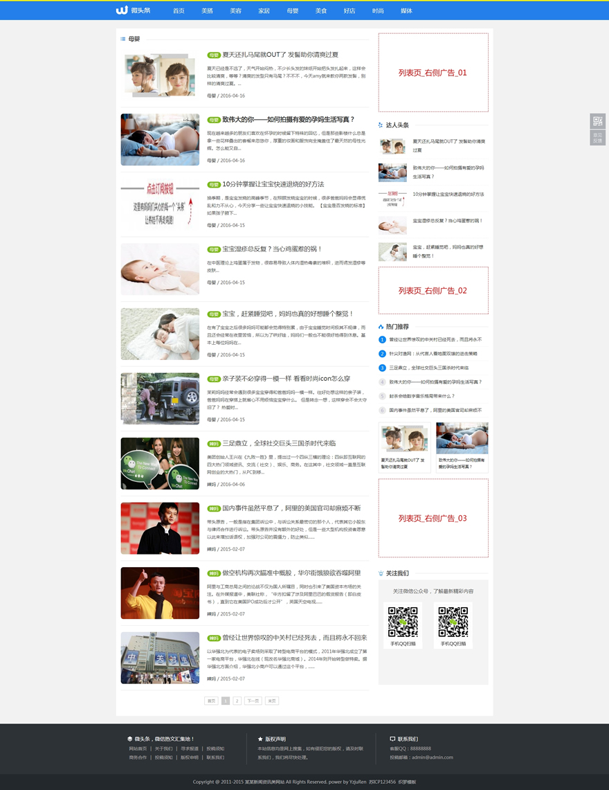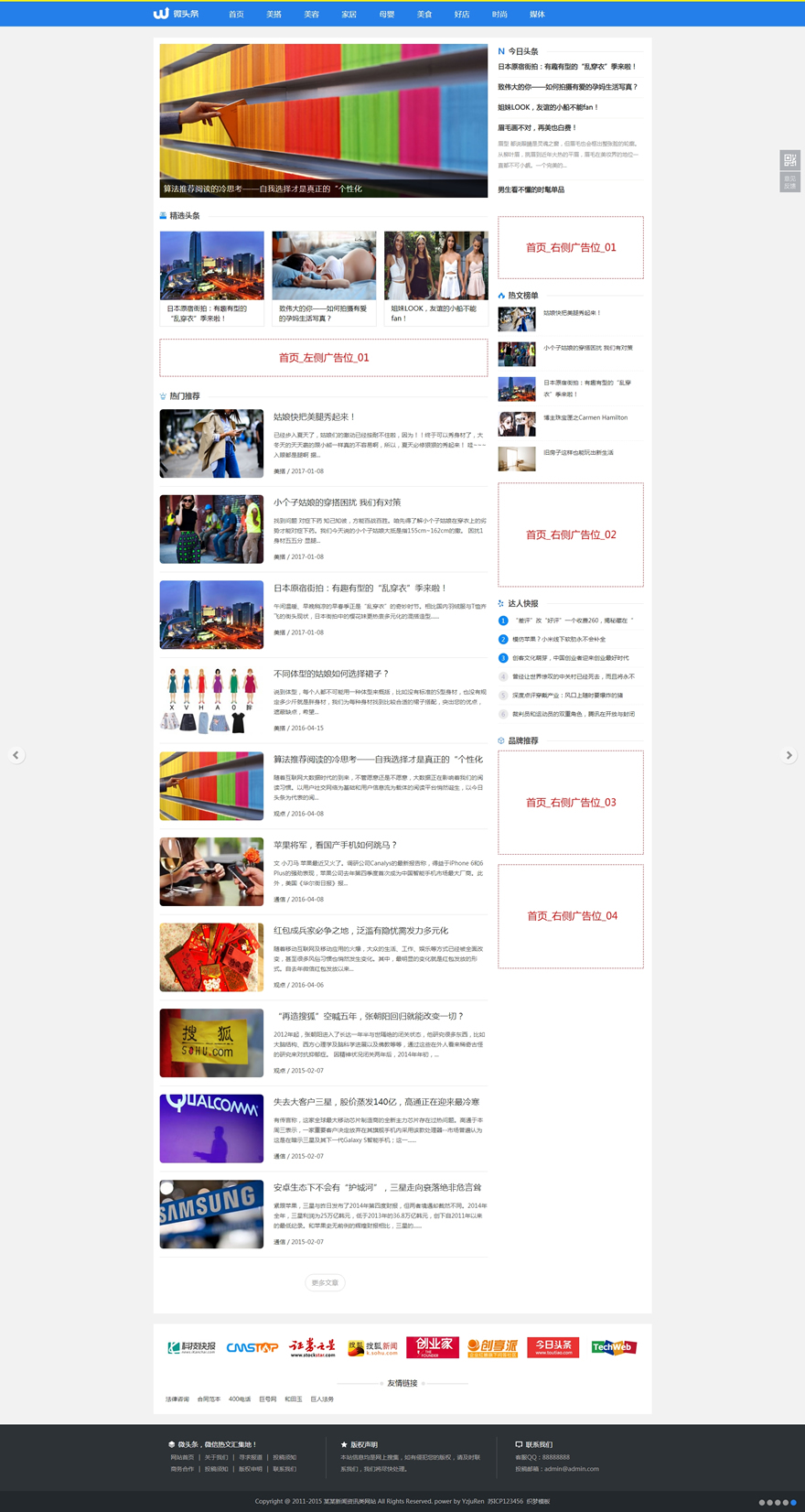 (带手机版数据同步)蓝色新闻博客自媒体头条网织梦模板 新闻博客资讯类网站源码下载-DeDecms(织梦)模板