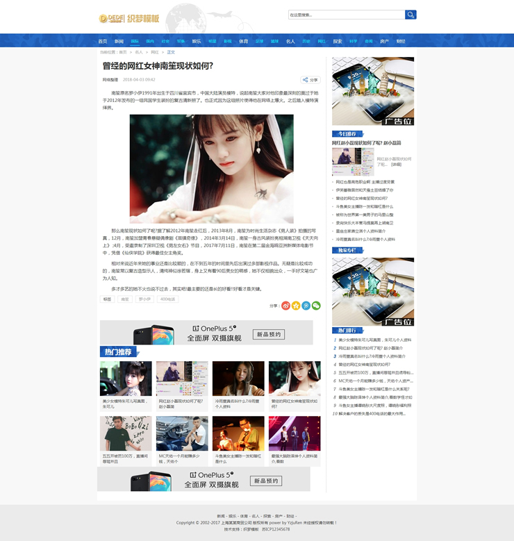 新闻在线博客地方门户资讯类织梦模板(带手机端-DeDecms(织梦)模板