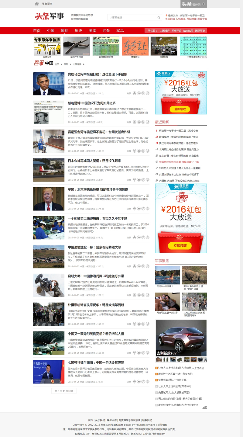 新闻博客军事资讯头条网织梦模板(带手机端)-DeDecms(织梦)模板