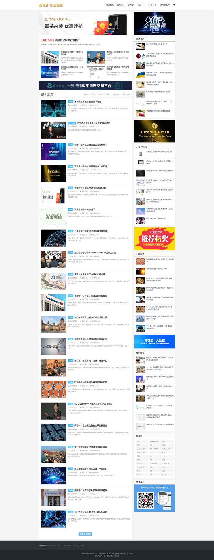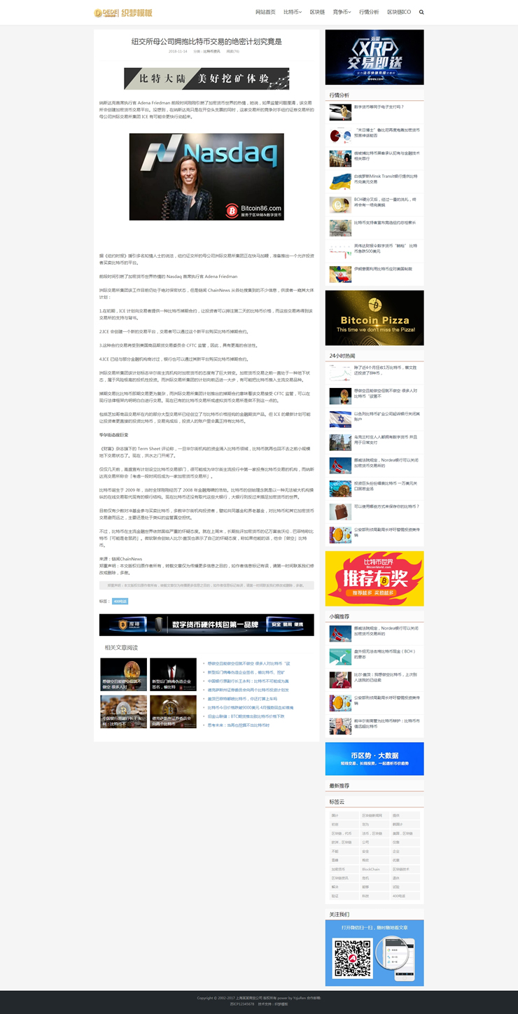 响应式比特币新闻资讯网类网站织梦模板HTML5金融-DeDecms(织梦)模板