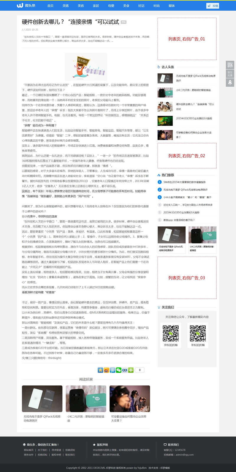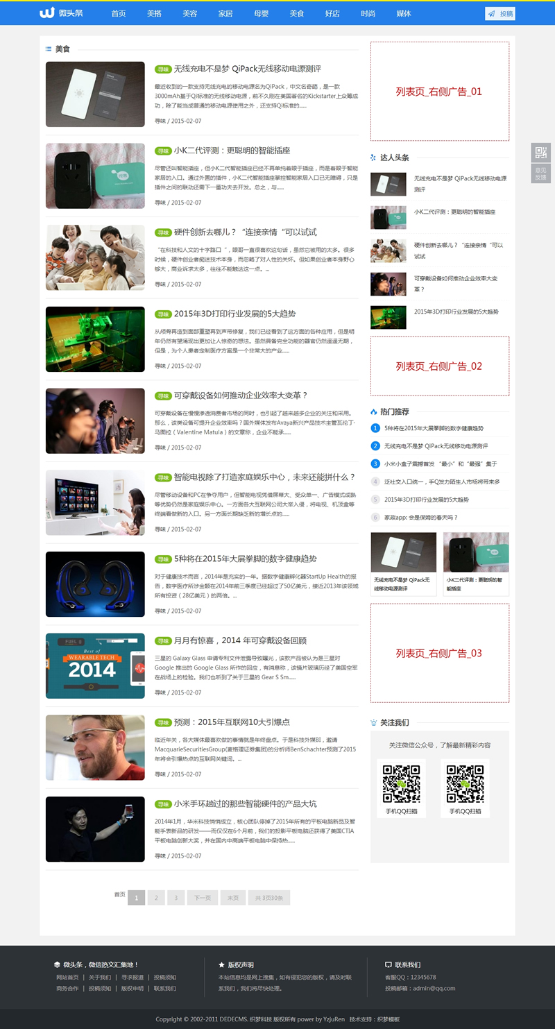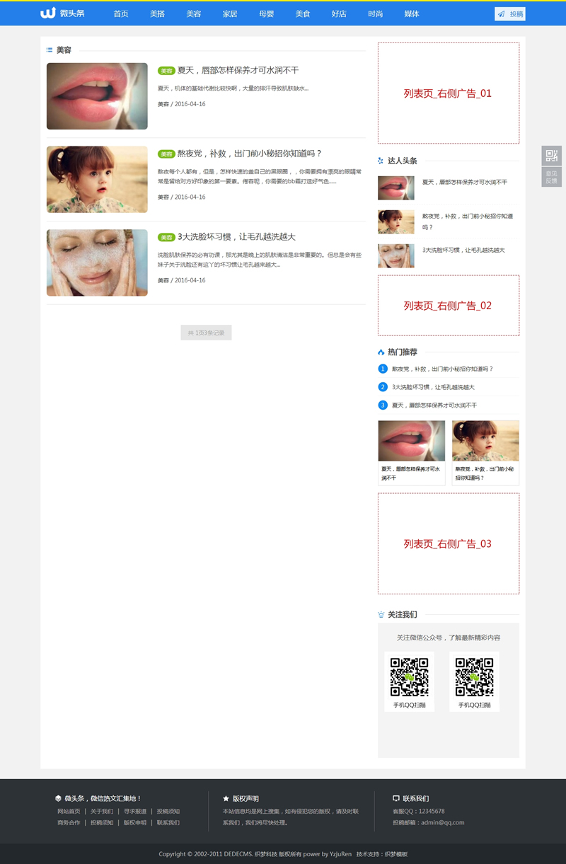 蓝色新闻博客自媒体头条网织梦模板(带手机端带-DeDecms(织梦)模板