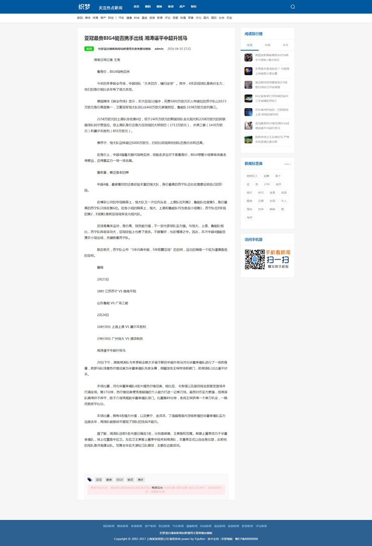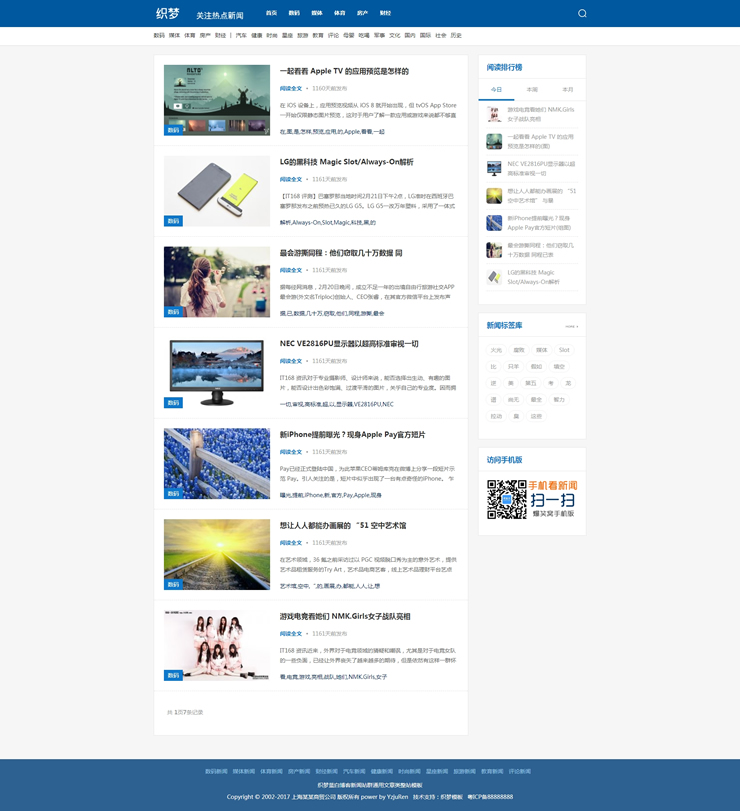 新闻在线博客地方门户资讯类织梦模板(带手机端-DeDecms(织梦)模板