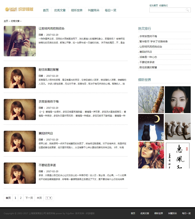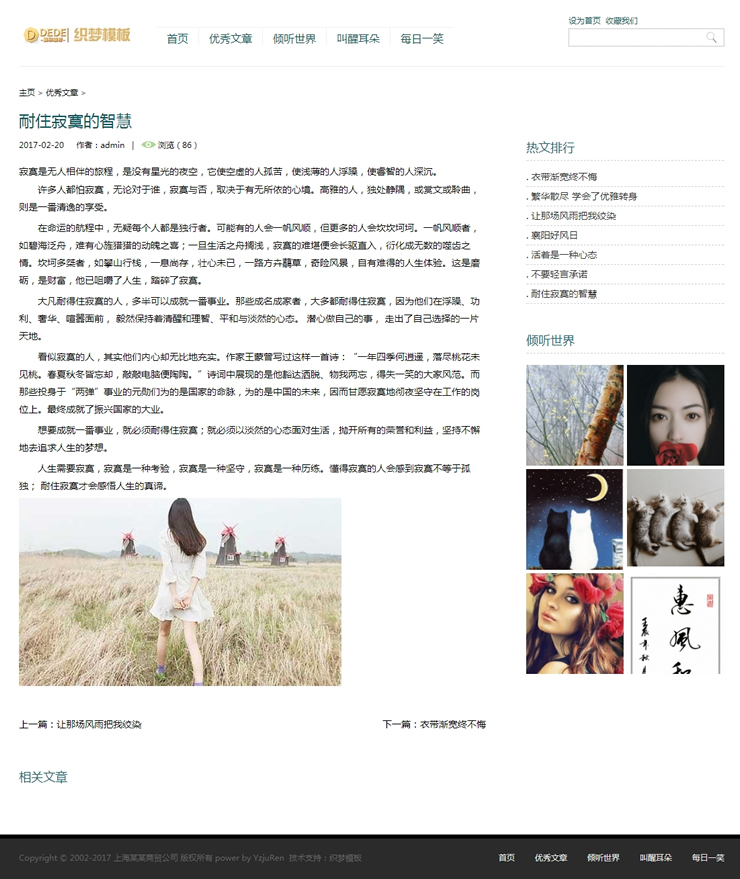 小清新优秀文章新闻织梦博客类网站源码个人博-DeDecms(织梦)模板