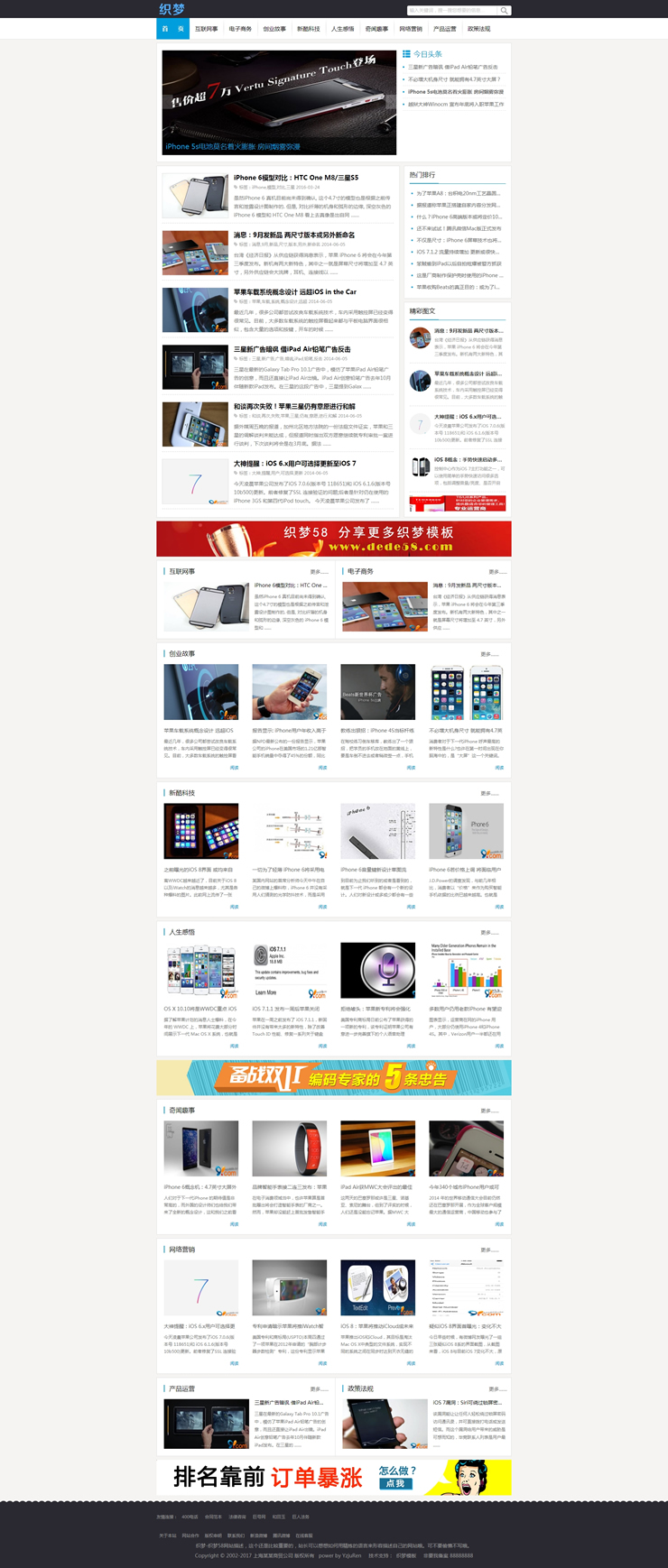 新闻在线博客地方门户资讯类织梦模板(带手机端-DeDecms(织梦)模板