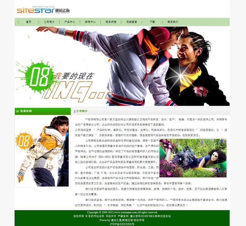 清淡绿色服装服饰类商品建站企业模板-建站之星模板