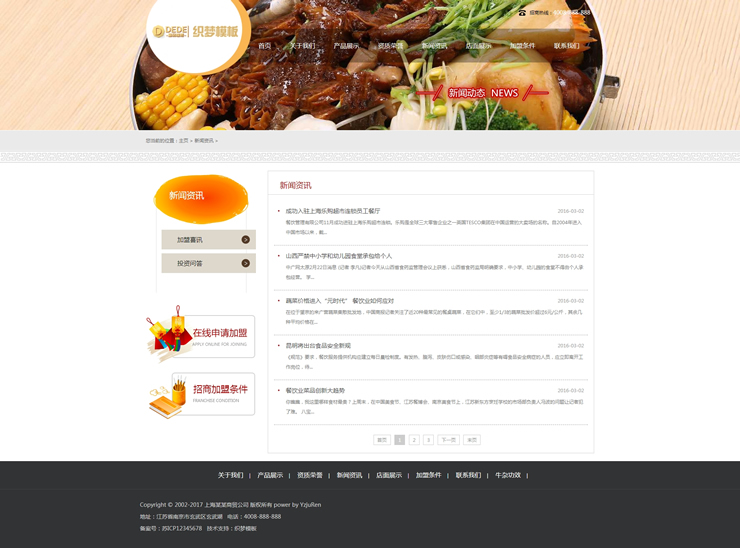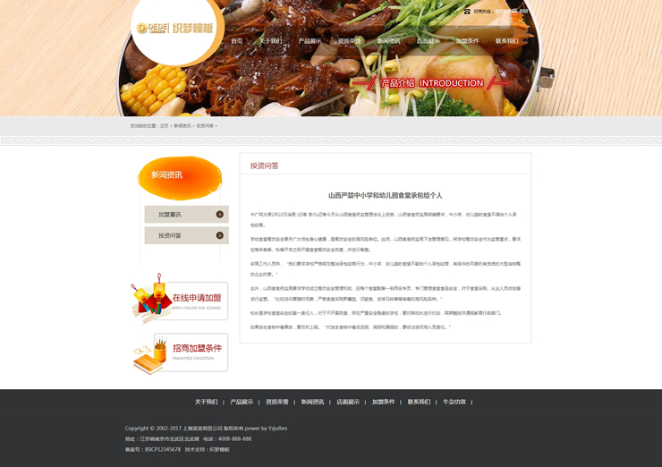 小吃加盟网站源码红色招商加盟食品类企业网站-DeDecms(织梦)模板