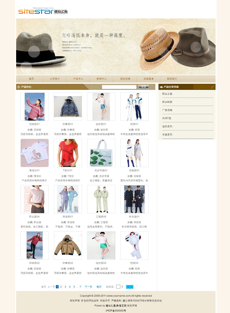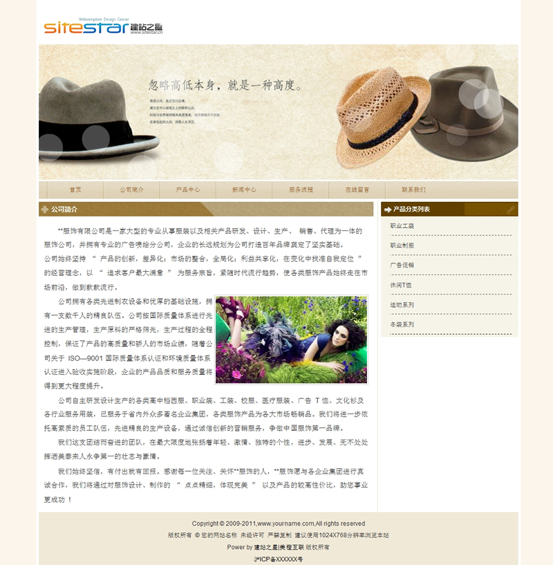 适用于服装类衣帽产品网站建站模板-建站之星模板