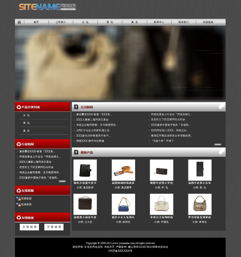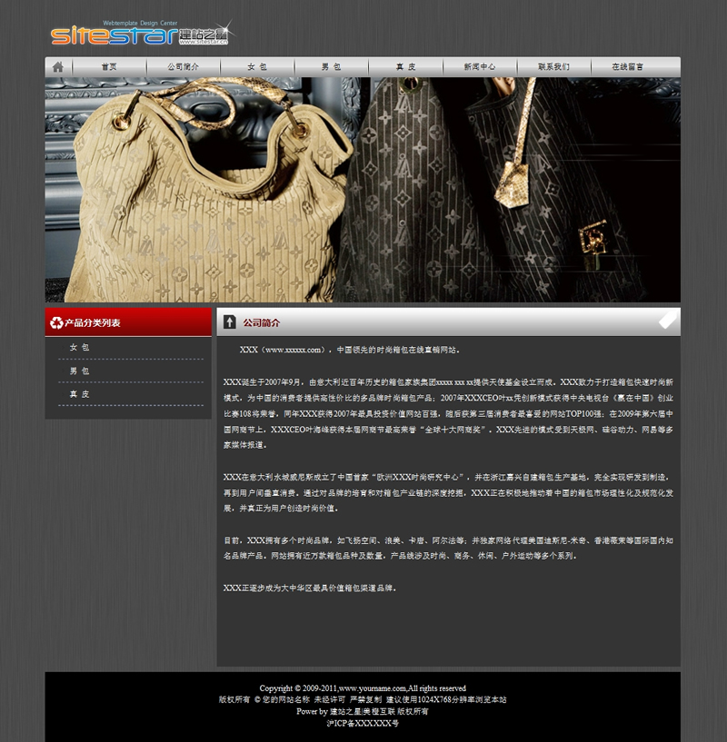 高档皮具用品皮鞋皮夹类网站建站模板-建站之星模板