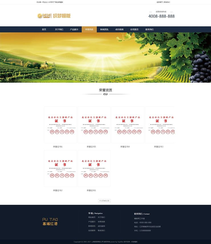 高端品牌红酒酒业类网站织梦模板葡萄酒酒庄酒-DeDecms(织梦)模板