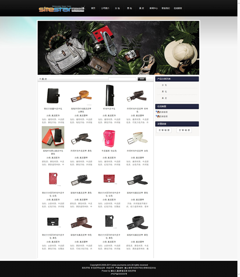 高档皮具用品皮鞋皮夹类网站建站模板-建站之星模板