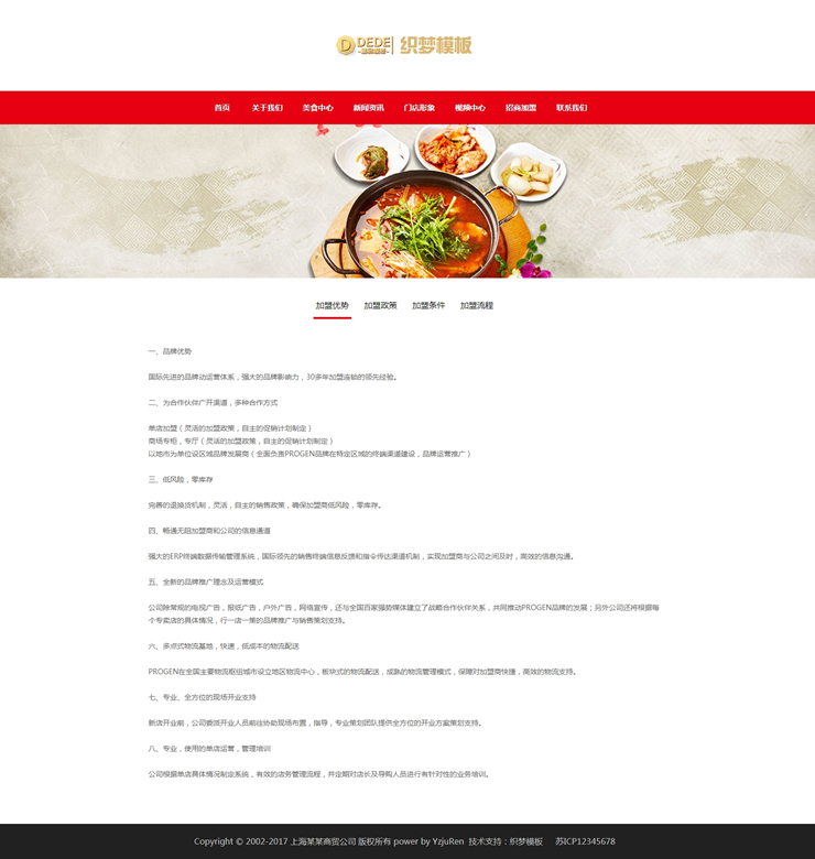 小吃加盟网站源码红色招商加盟食品类企业网站-DeDecms(织梦)模板