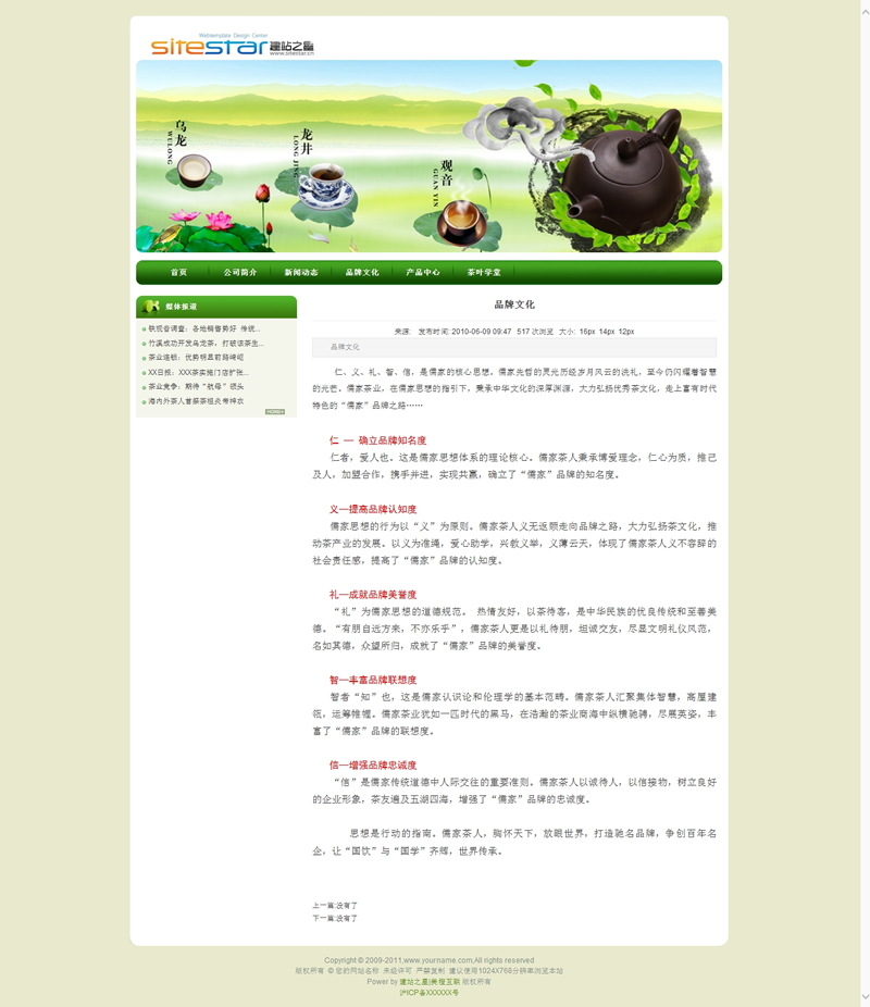 茶术茶道茶叶制品茶具产品建站模板-建站之星模板