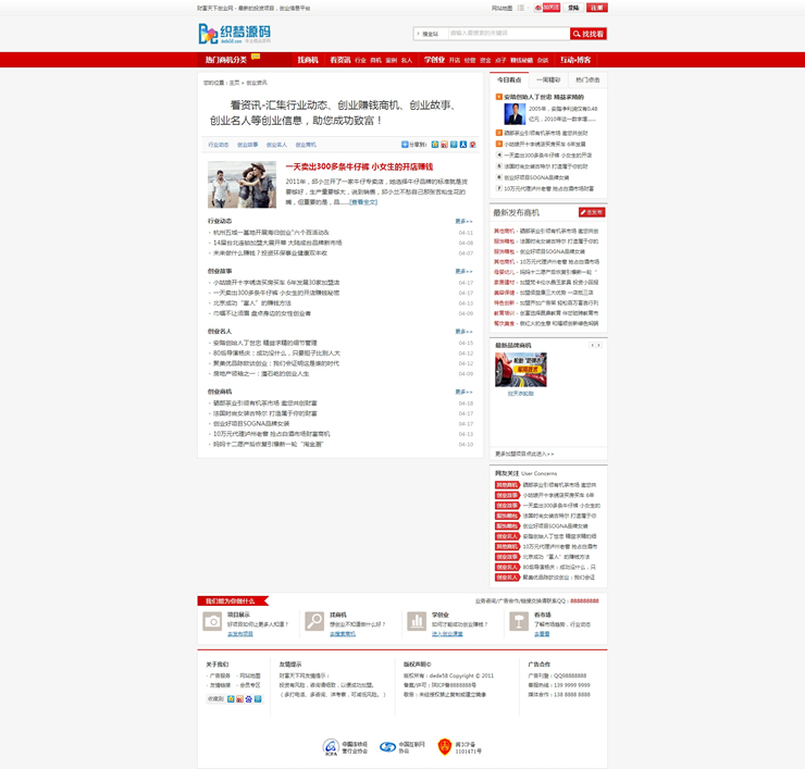 红色大型创业财富资讯类整站模板-DeDecms(织梦)模板