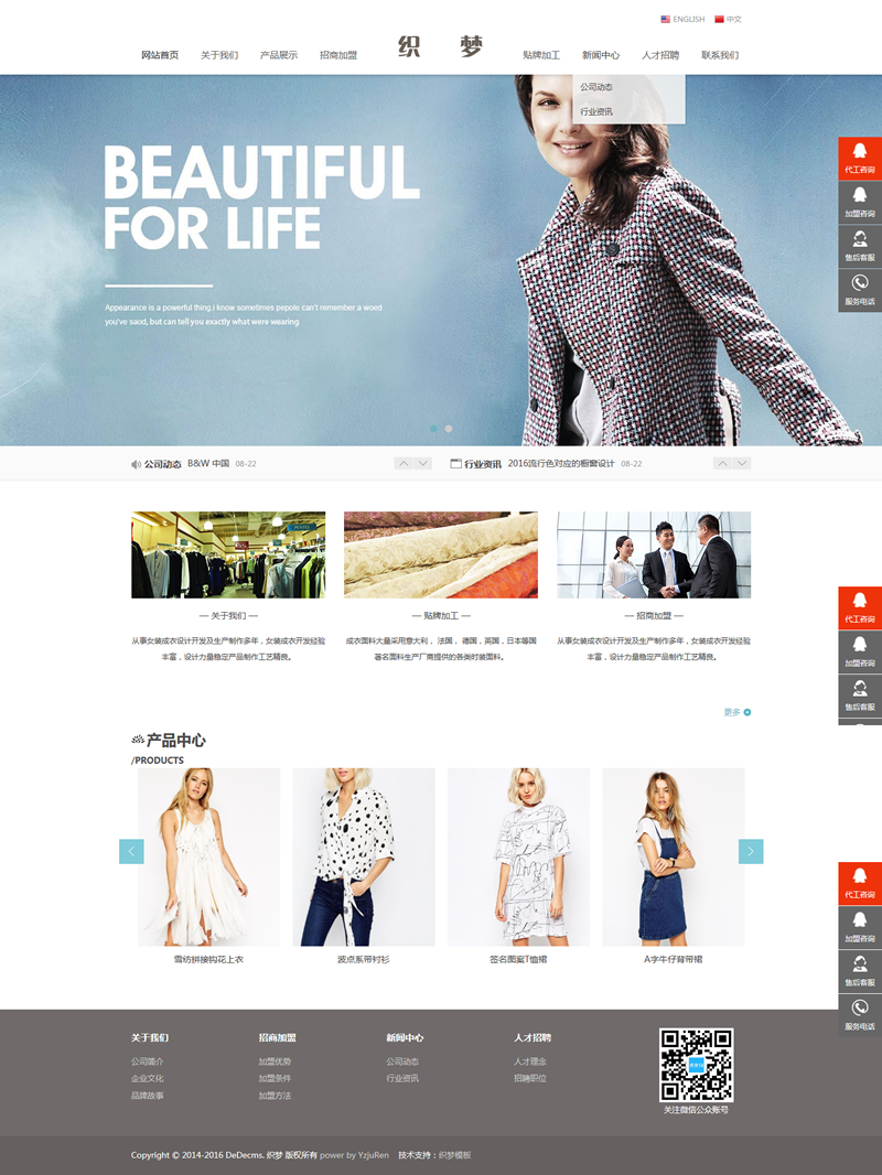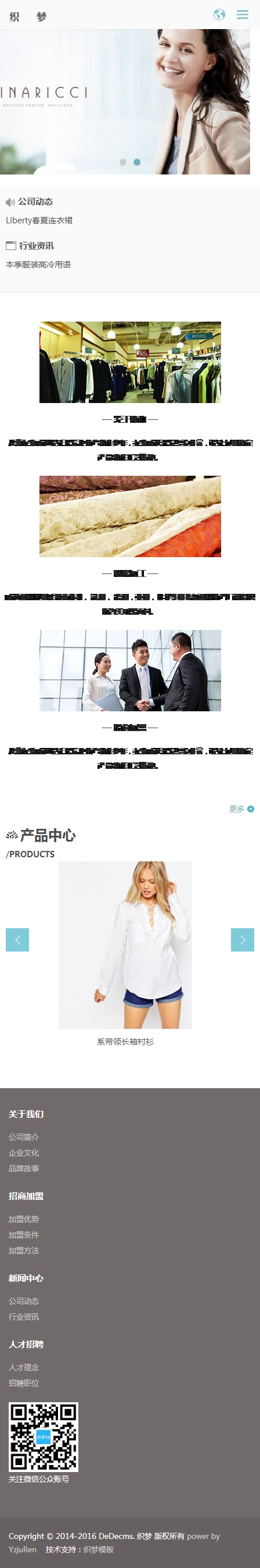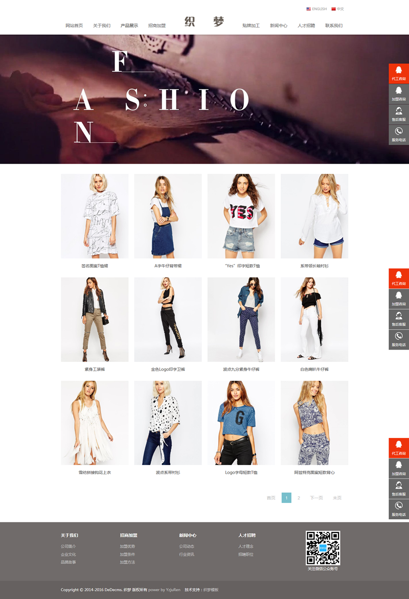 中英双语服装连锁加盟店网站织梦模板(响应式自-DeDecms(织梦)模板