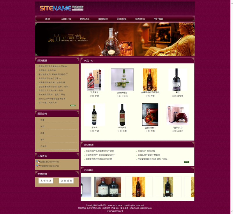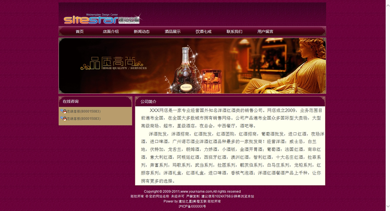精品酒业各种名牌酒系列产品建站程序-建站之星模板