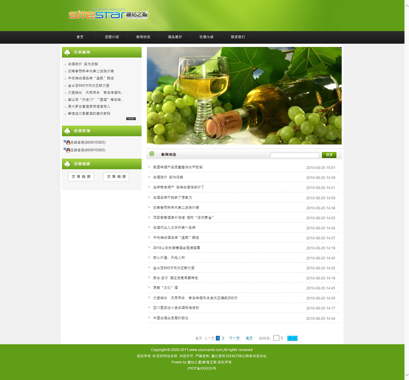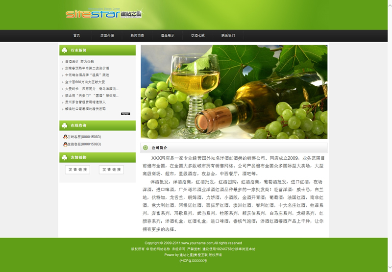 绿色清新自然酒品食品级建站企业网站模板-建站之星模板