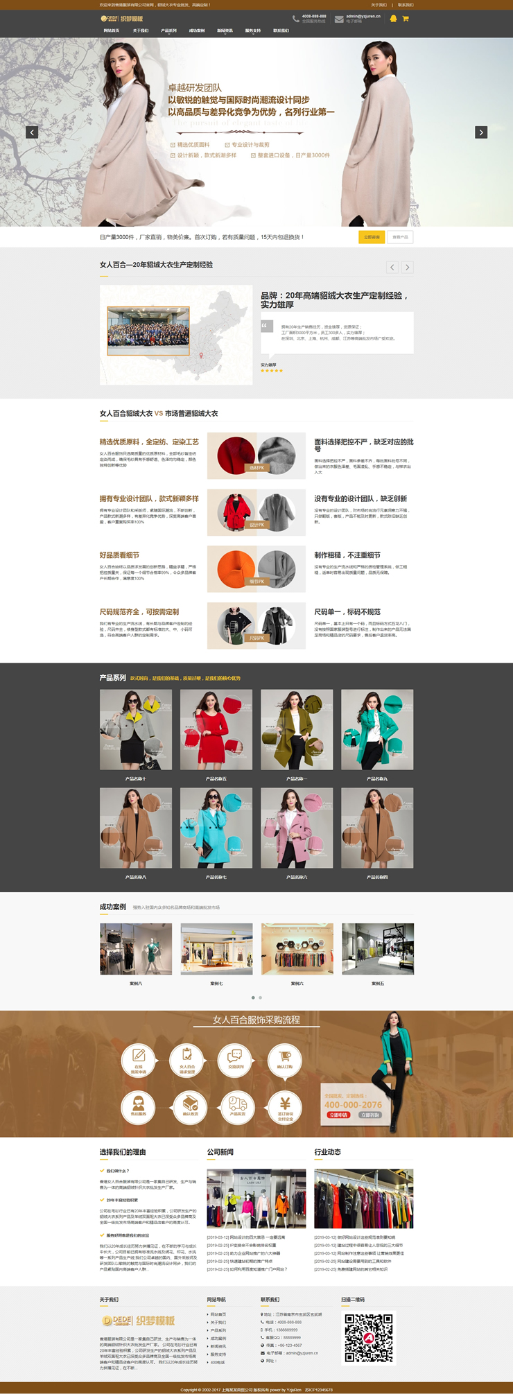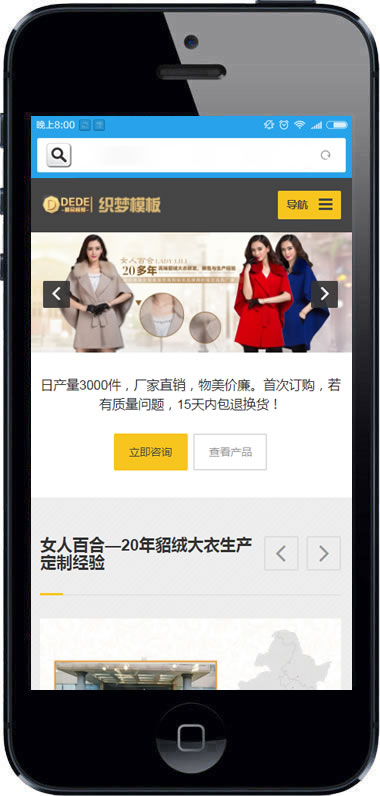 响应式貂绒大衣服装设计生产类网站织梦模板H-DeDecms(织梦)模板