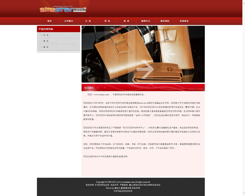 高档皮具用品皮鞋皮夹类网站建站模板-建站之星模板