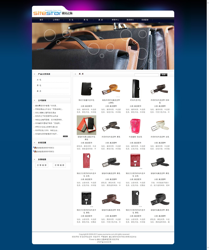 各种类别皮具产品家用小饰品建站模板-建站之星模板