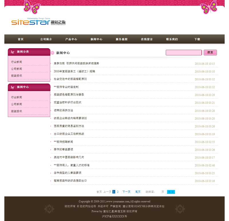 粉色通用服饰类产品公司网站建站模板-建站之星模板