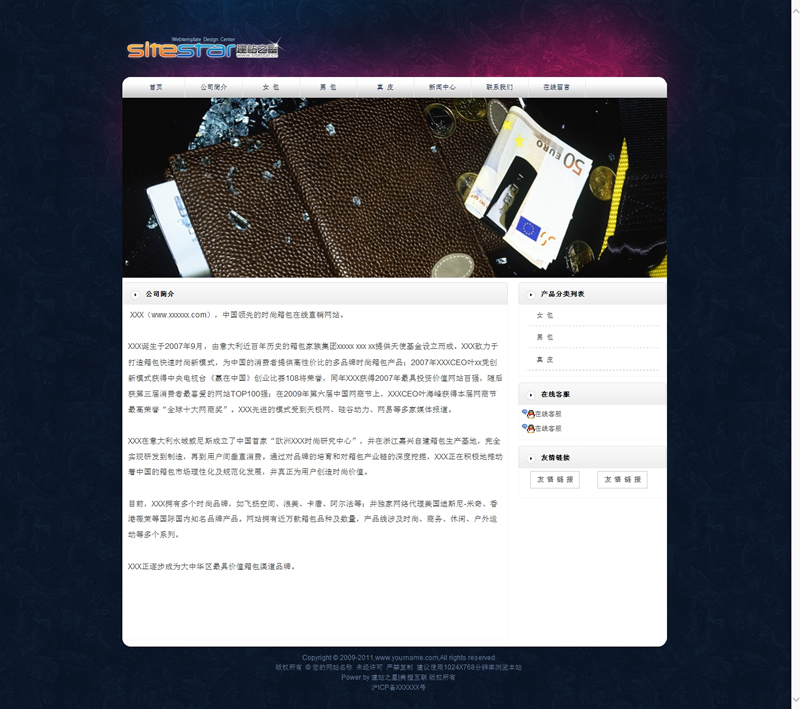 高档皮具用品皮鞋皮夹类网站建站模板-建站之星模板