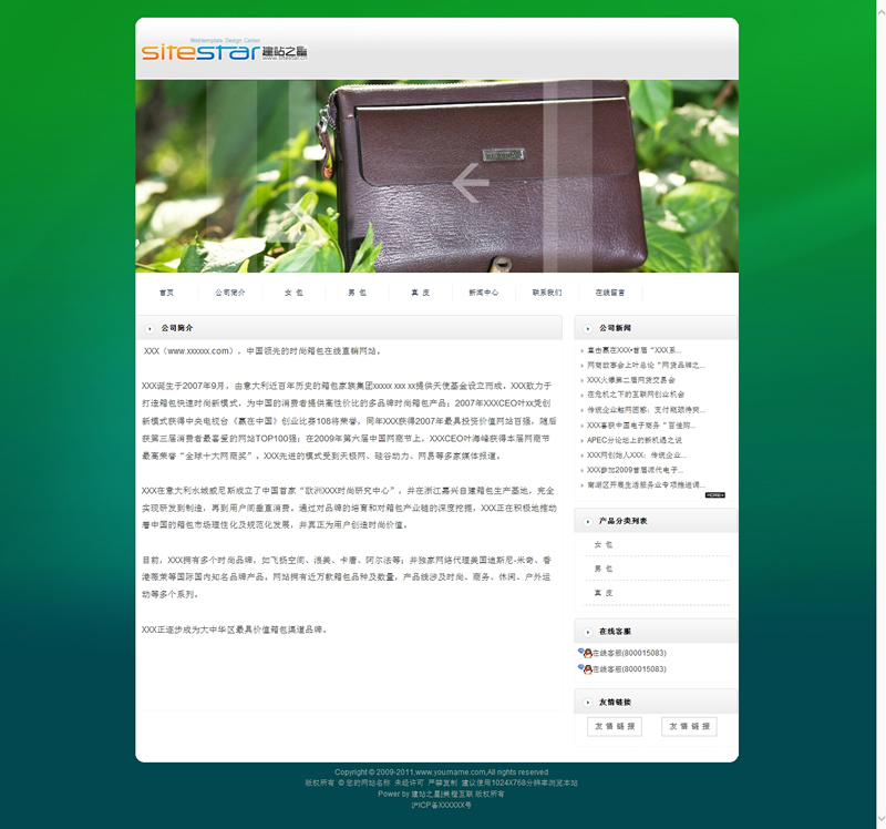绿色家用皮具用品各种皮饰品建站模板-建站之星模板
