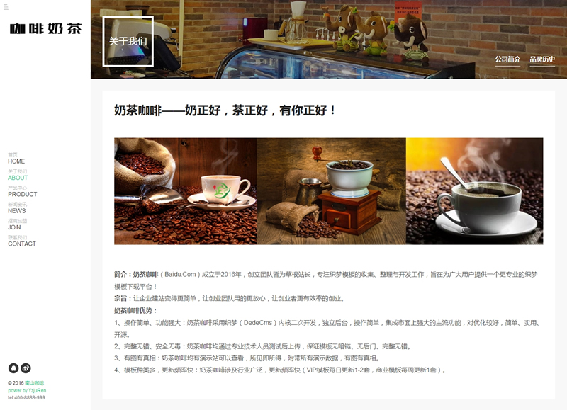 响应式带音乐背景咖啡奶茶食品类织梦模板(自适-DeDecms(织梦)模板