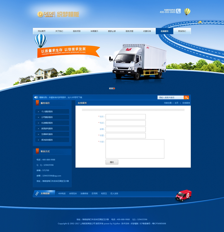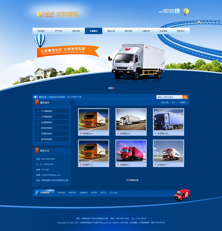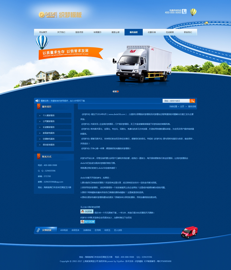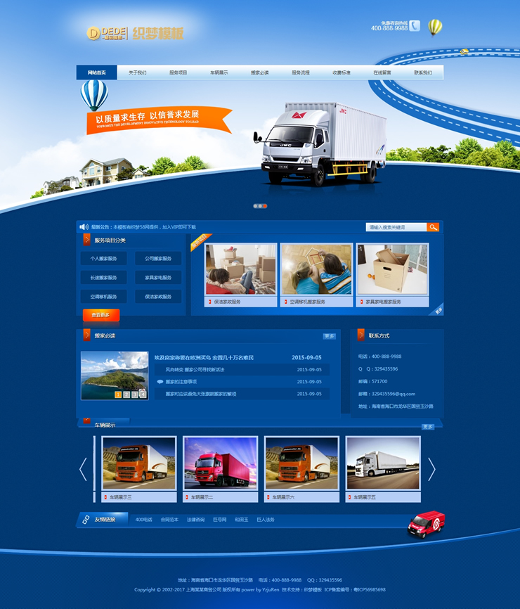 蓝色大气搬家家政公司网站织梦源码-DeDecms(织梦)模板