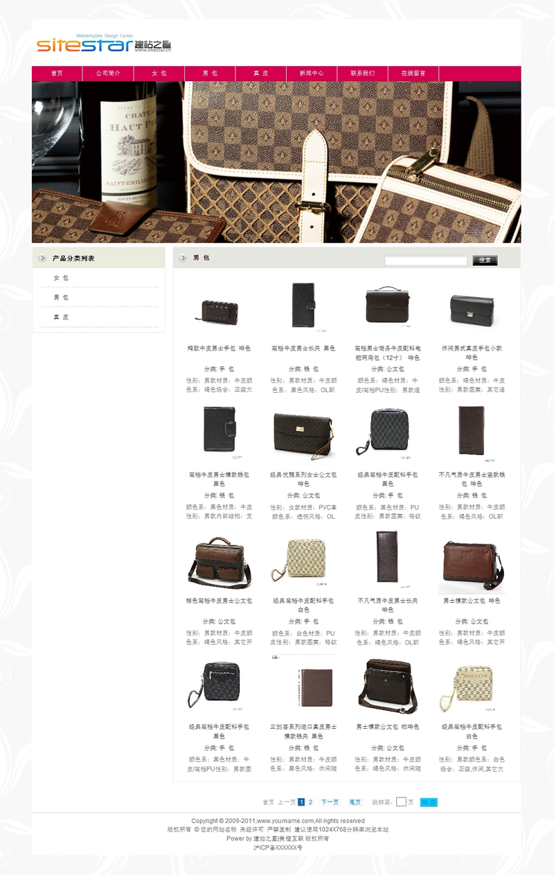 高档皮具用品皮鞋皮夹类网站建站模板-建站之星模板