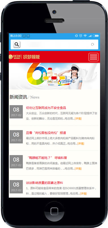 小吃加盟网站源码红色招商加盟食品类企业网站-DeDecms(织梦)模板