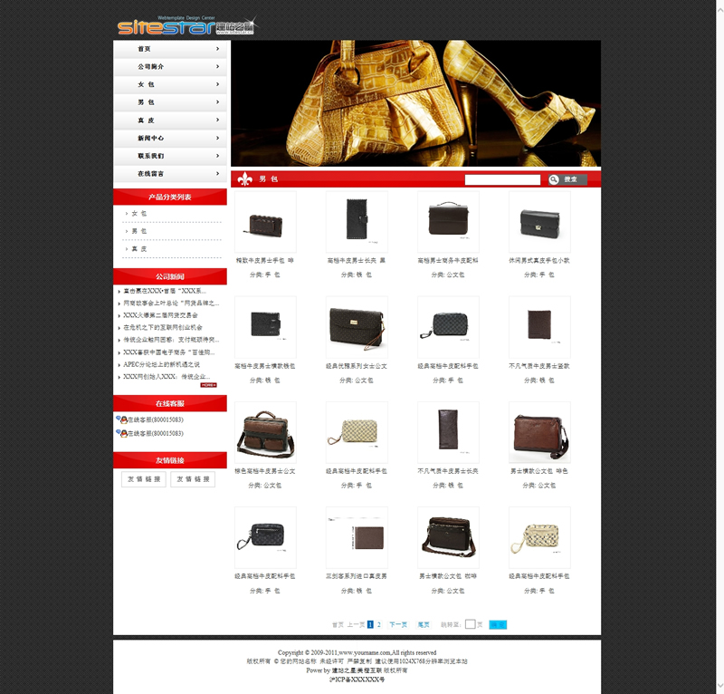 高档皮具用品皮鞋皮夹类网站建站模板-建站之星模板