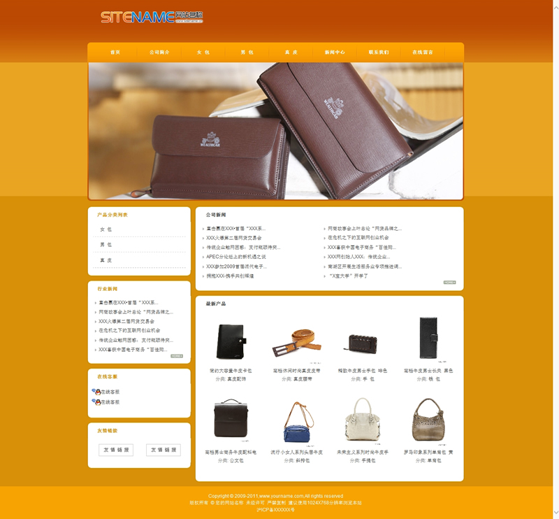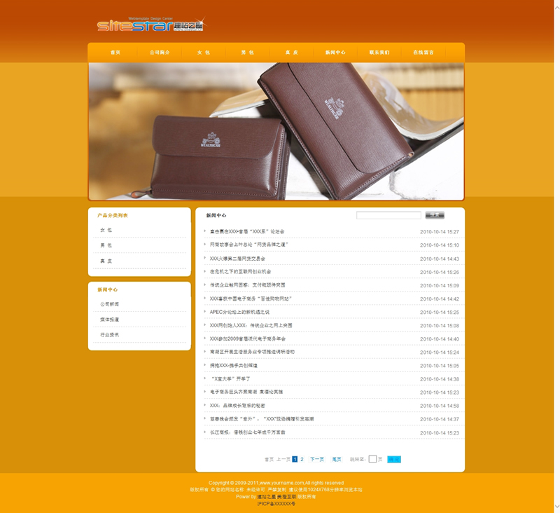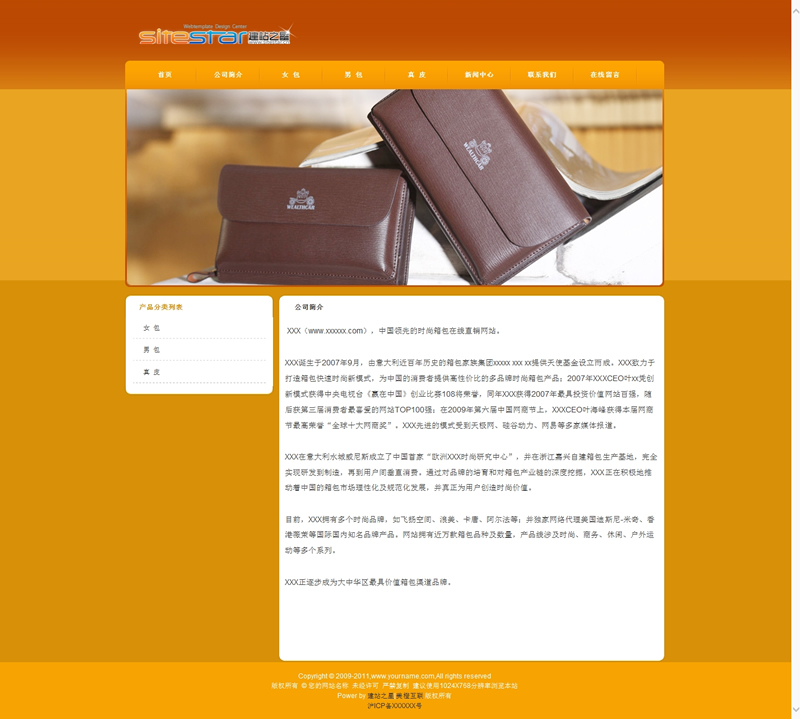 黄色系列皮具用品小饰品网站建站模板-建站之星模板