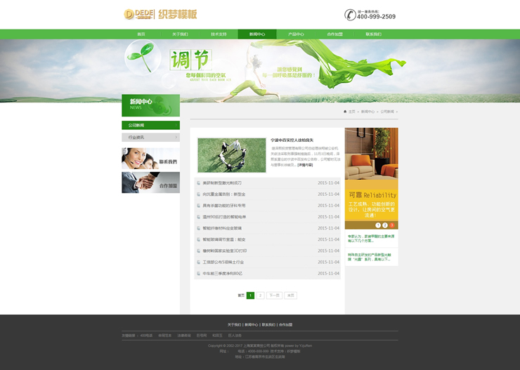室内空气质量检测网站源码 环保型企业织梦模板-DeDecms(织梦)模板