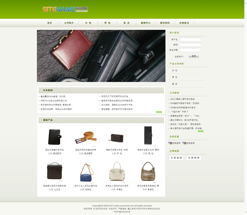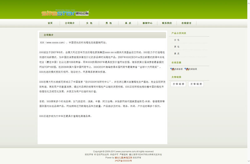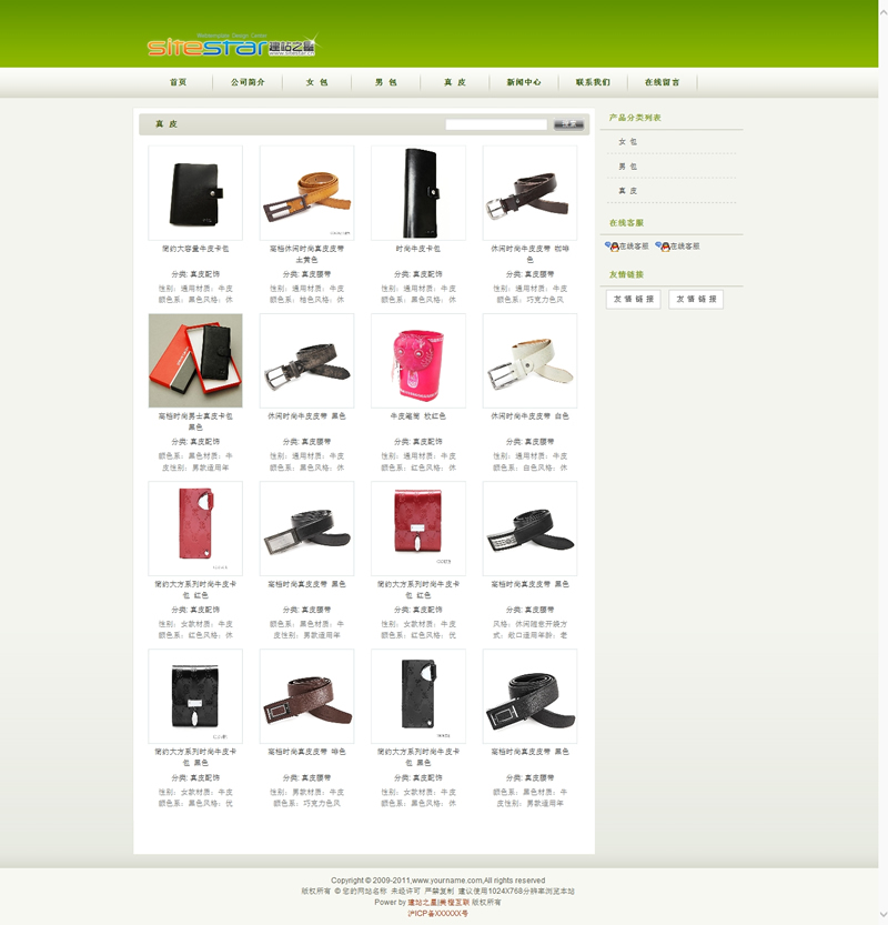 绿色通用皮具类商品企业网站建站模板-建站之星模板