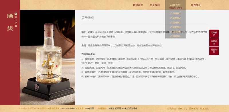 白酒酒类产品展示类企业织梦网站模板(带手机端-DeDecms(织梦)模板