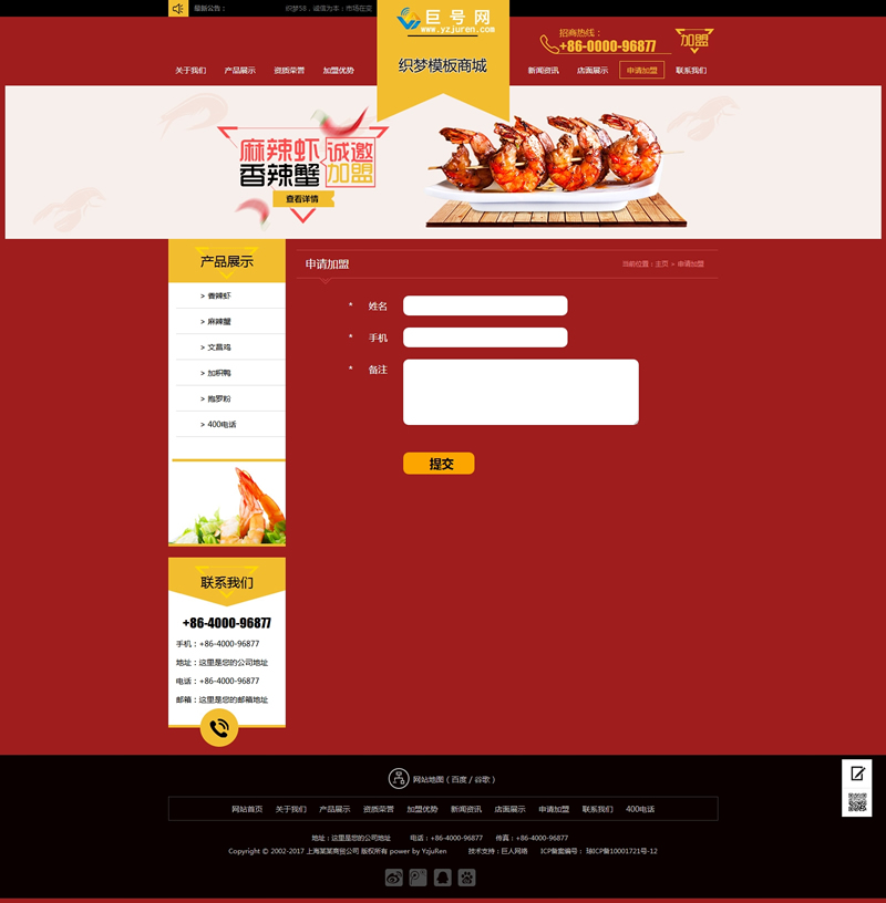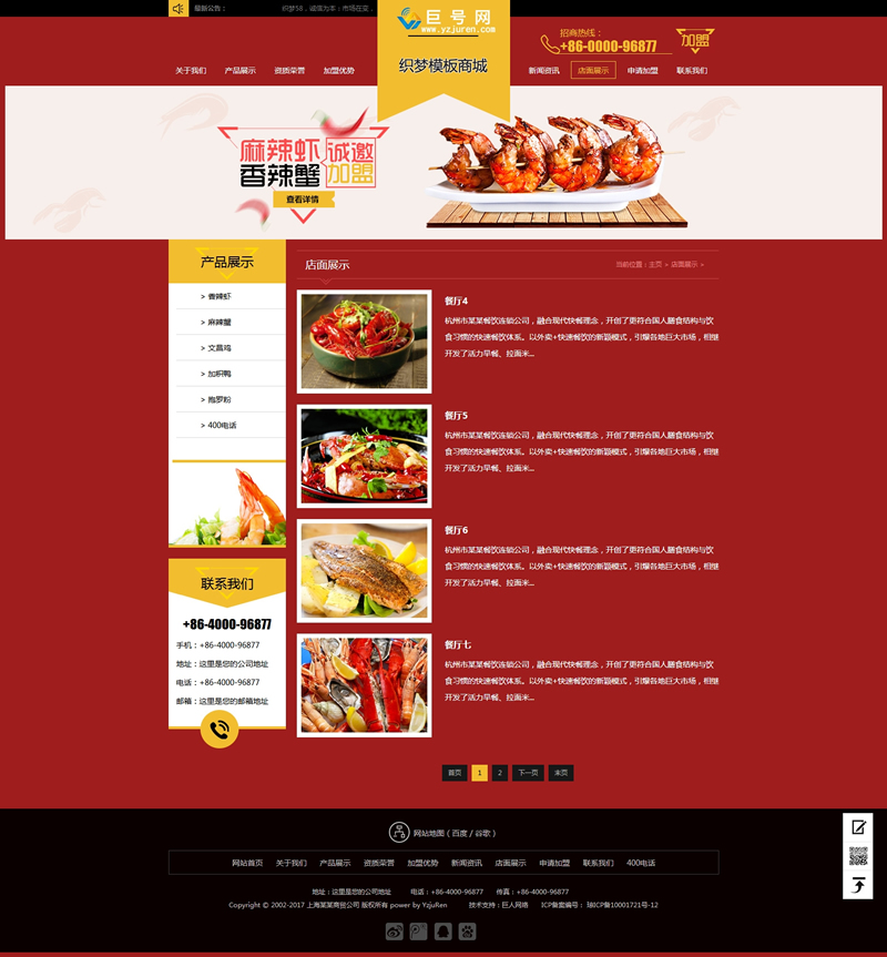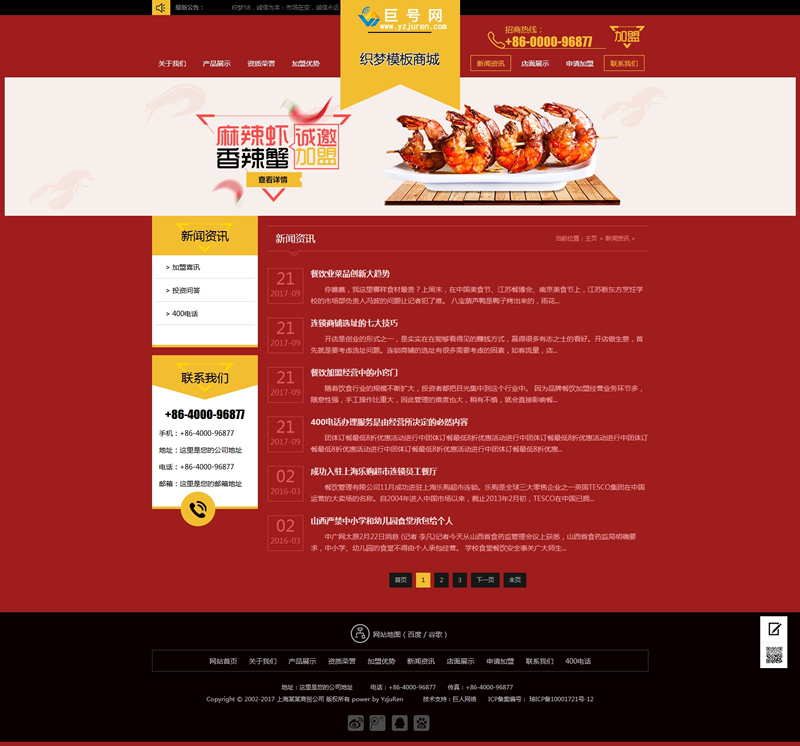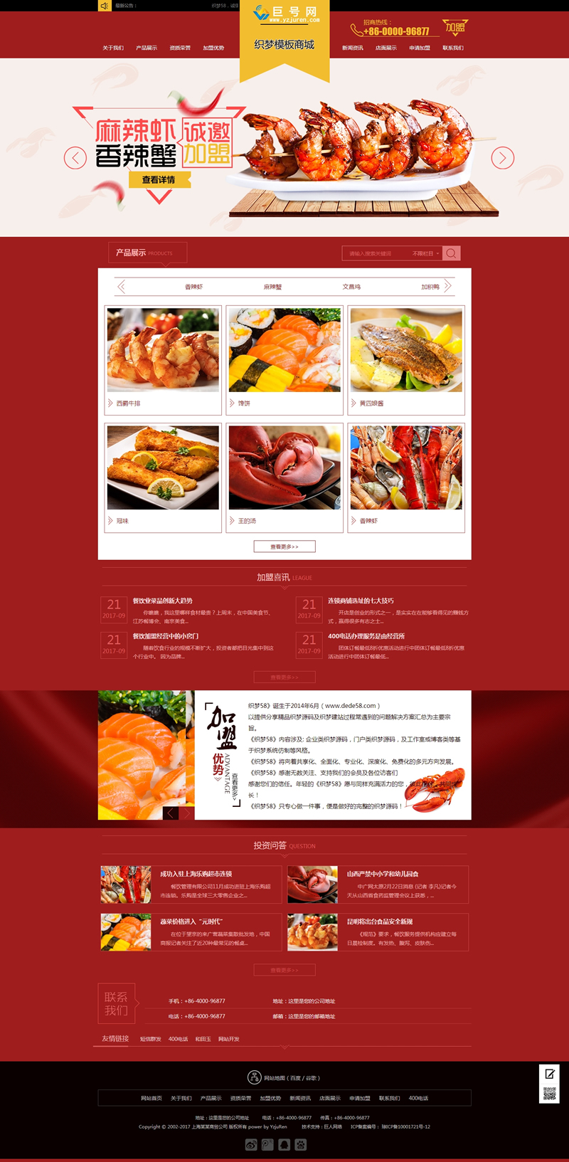 小吃加盟网站源码红色招商加盟食品类企业网站-DeDecms(织梦)模板