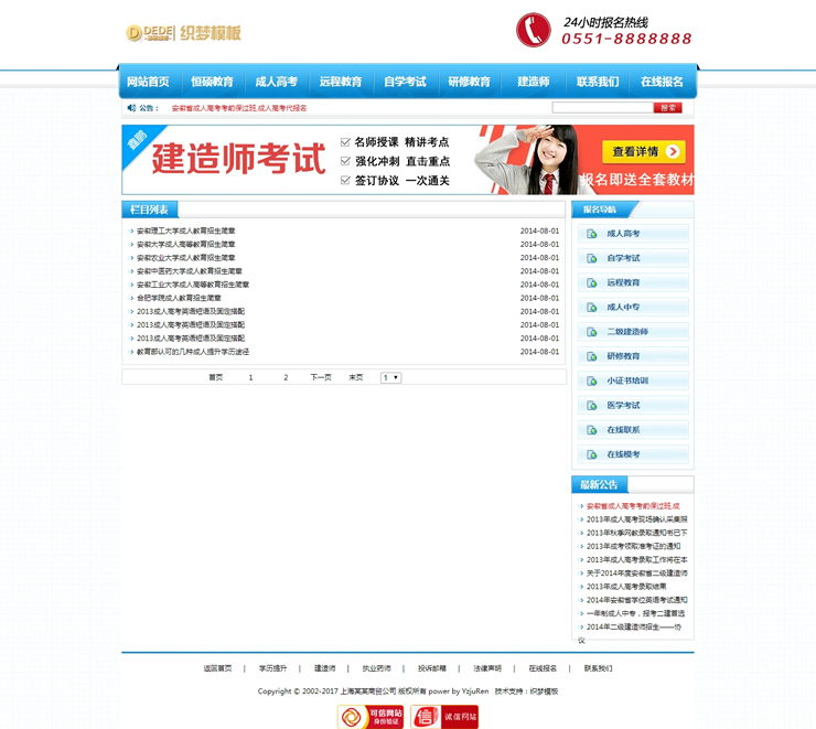 蓝色成人培训远程教育类企业织梦模板-DeDecms(织梦)模板