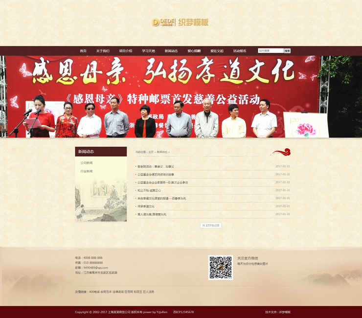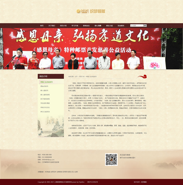 慈善公益网站源码公益基金文化孝道织梦模板-DeDecms(织梦)模板
