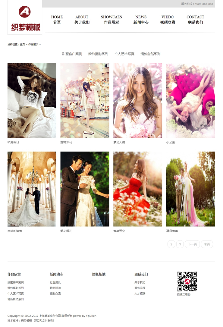 红色瀑布流婚纱摄影dede织梦模板-DeDecms(织梦)模板