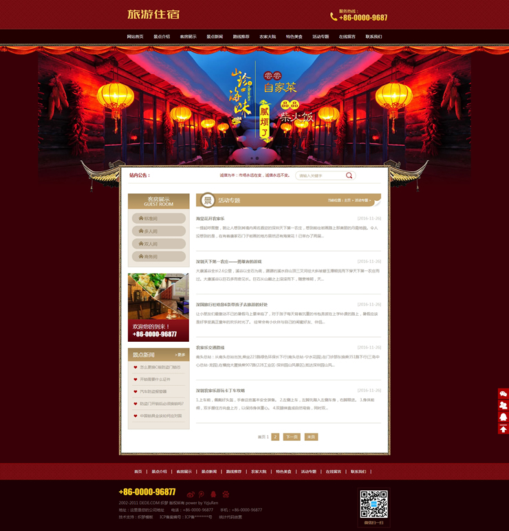 旅游住宿农家乐类织梦模板(带手机端)-DeDecms(织梦)模板