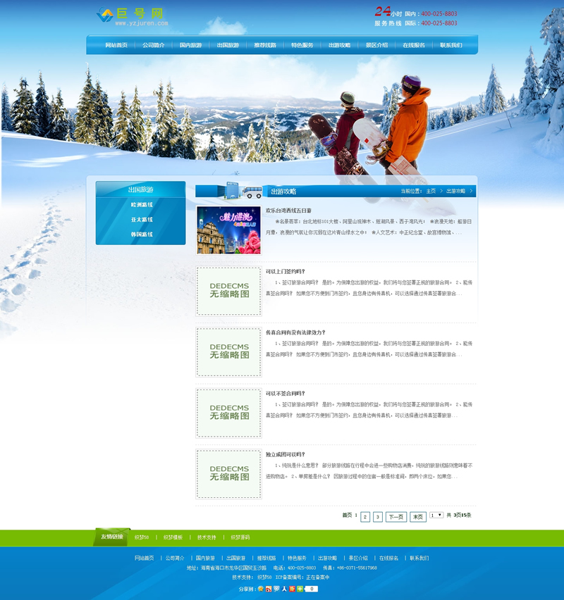 滑雪场旅行旅游户外活动类企业织梦网站模板-DeDecms(织梦)模板