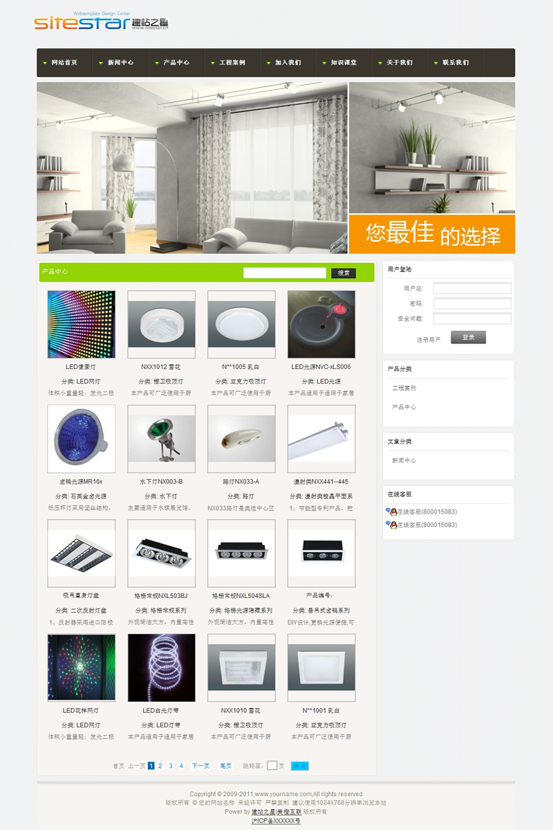 时尚照明灯具各种家用灯饰用品建站模板-建站之星模板