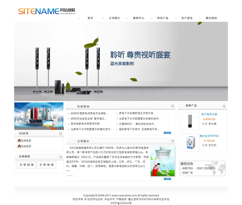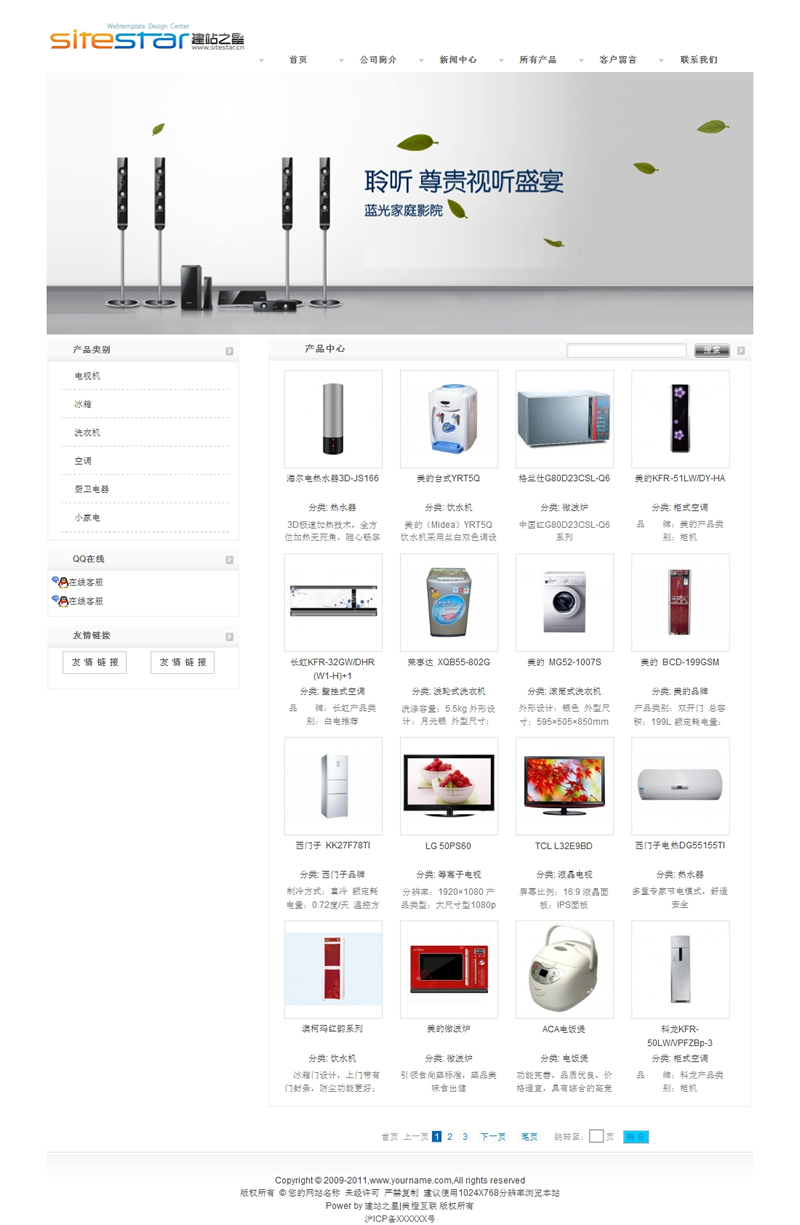 电器用品各类常用家居电器建站模板-建站之星模板