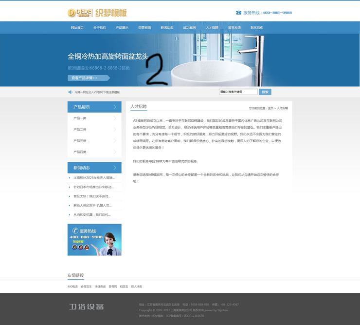 卫浴瓷器产品类网站织梦模板淋浴陶瓷瓷砖类织-DeDecms(织梦)模板