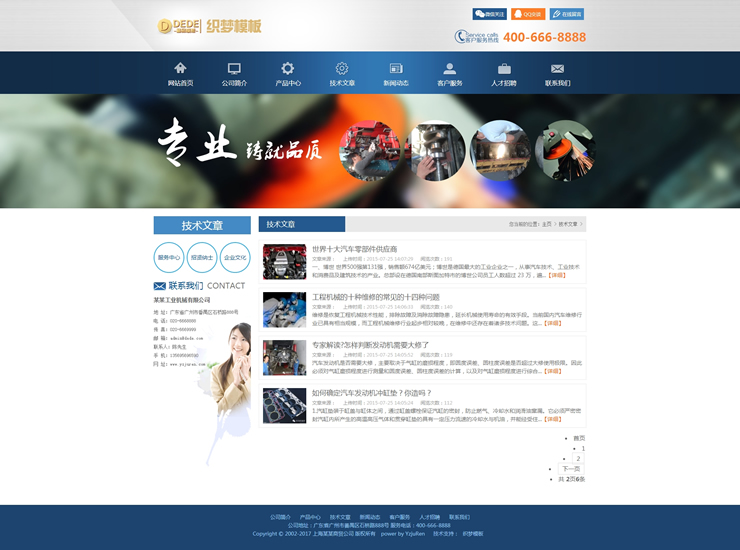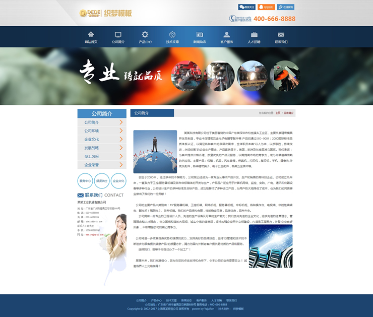 蓝色机械电子设备类公司织梦模板-DeDecms(织梦)模板